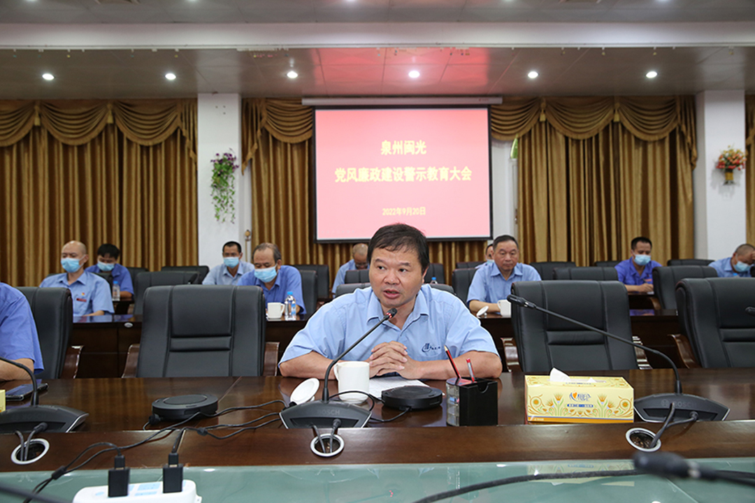 9月20日上午,泉州閩光公司組織召開黨風(fēng)廉政建設(shè)警示教育會,深入貫徹落實中央八項規(guī)定精神,集中學(xué)習(xí)了《中國共產(chǎn)黨紀(jì)律處分條例》和上級紀(jì)委“中秋、國慶”期間有關(guān)紀(jì)律文件精神,安排部署“兩節(jié)”期間黨風(fēng)廉政建設(shè)工作,為全司黨員干部敲響廉政警鐘。