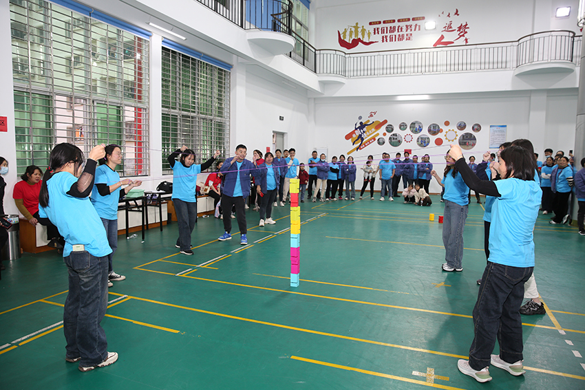 本次趣味運動會精心設(shè)置了破冰熱身——桃花朵朵開、原地踏步、魔力轉(zhuǎn)轉(zhuǎn)圈、投籃、十指同心接力、合力搭建等6個兼顧趣味性、活動性和競爭性的團隊項目。比賽中,參賽隊員嚴格遵守規(guī)則,熱情高漲、默契配合、以奮力進取、團結(jié)協(xié)作的精神,全力投入到各個比賽項目中。整個比賽過程既緊張激烈又趣味橫生,女職工們既相互競爭又相互合作,在歡聲笑語中享受運動會帶來的歡樂。