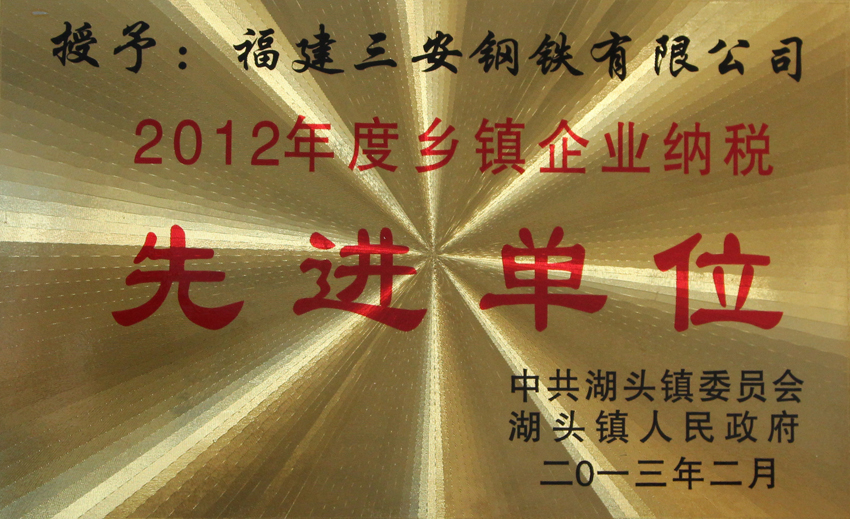 2012年度鄉(xiāng)鎮(zhèn)企業(yè)納稅先進單位