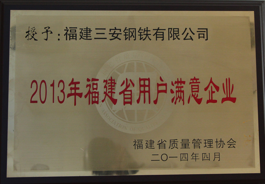2013年福建省用戶滿意企業(yè)