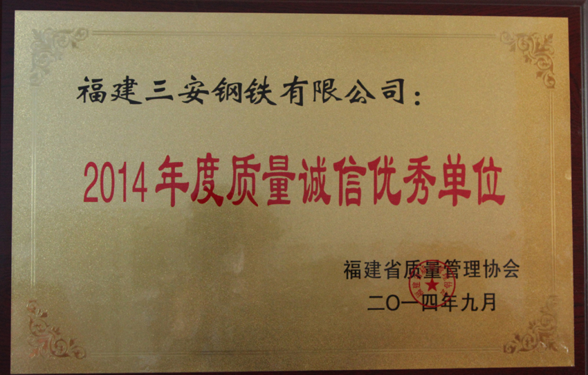 2014年度質量誠信優(yōu)秀單位